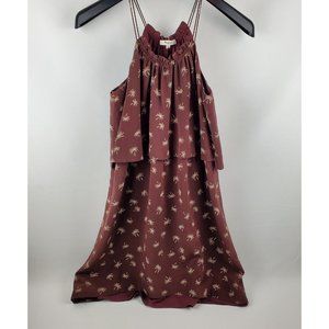 Madewell Women Dream Drift Overlay Palm Tree Silk Dress Lined Brown Size 4 C6315