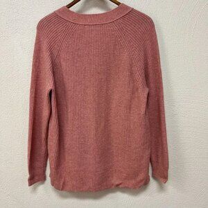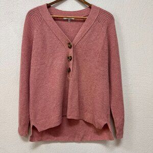 Madewell Women Lyle Ribbed Henley Sweater Knitted Merino Wool Pink Size Small