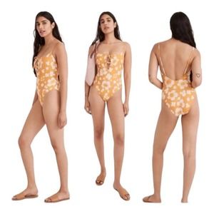 Madewell Women M Second Wave Tie Front One Piece Swimsuit Watercolor Floral NEW