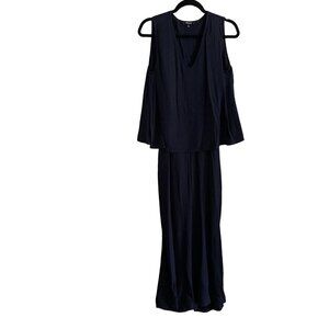 Madewell Women S Navy Blue Sleeveless Open Back Cropped Key Overlay Jumpsuit.