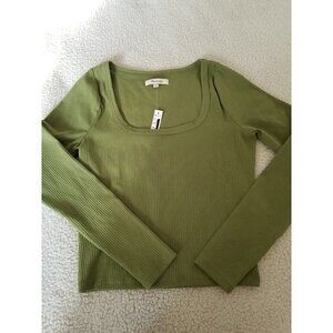 Madewell Women Square Neck Long Sleeve Ribbed Cropped Sleekhold Green Top Size S
