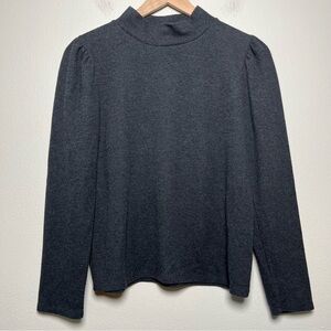Madewell Women's Sweatshirt Medium Gray Plush Mockneck Puff-Sleeve Top