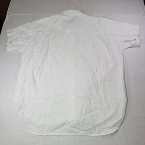 This versatile Madewell button-up shirt features a relaxed fit, short sleeves, and a classic white design, ideal for professional or casual settings.