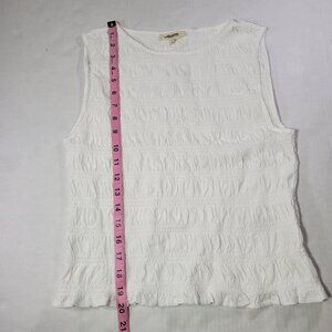 Madewell Women White Cotton Linen Blend Sachi Smocked Tank Top Size M