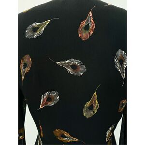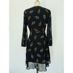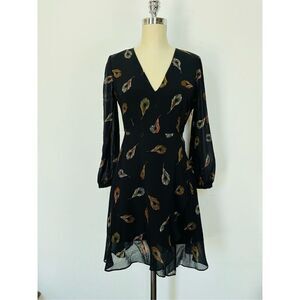 A wear-all-season mini dress in an easy feather print that was hand drawn by one of our designers. With its flattering wrap bodice and sweet ruffled hem, this is the kind of effortless style you'll find any excuse to wear. Falls 34" from high point of shoulder. Poly georgette. Lined. Side invisible zipper. Like new condition.