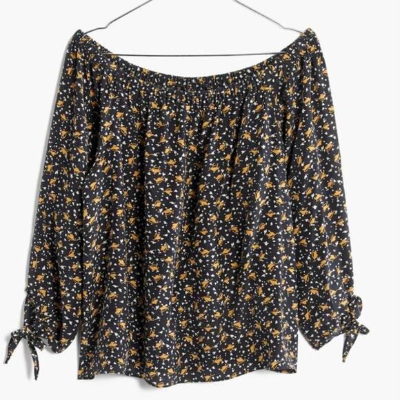 Madewell Women’s 100% Silk Off-the-Shoulder Top in Falling Leaves Size Medium 8