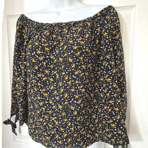 A swingy off-the-shoulder top with pretty ties on the sleeves