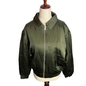 Madewell Womens $188 Relaxed Zip-Front Bomber Jacket Mossy Umber Size S NT115