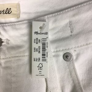 Madewell’s Plus Perfect Vintage Jeans offer a timeless silhouette with a modern touch. Crafted in a crisp tile white shade, these jeans feature a raw hem for an effortlessly cool look. Made from 96% cotton, they provide a soft, comfortable feel with a structured fit. Please note a small black dot on the left pant leg (shown in the third photo).