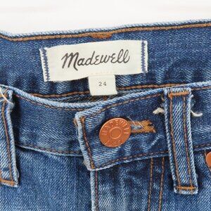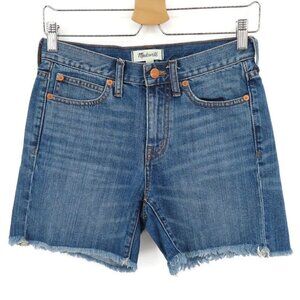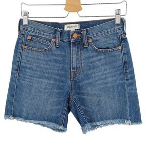 Madewell Womens 24 Blue Denim Shorts Distressed Raw Hem Copper Button Studs Jean