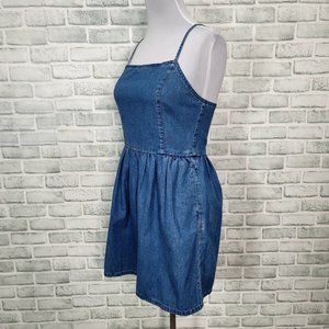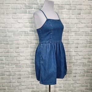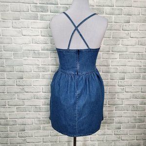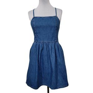 Madewell Womens 8 Denim Spaghetti Strap Criss Cross Back Fit and Flare Sundress