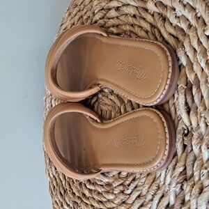 Trending brand Madewell women's classic camel brown leather multi-strap slide flats sandals. Pre-owned and in very gently used condition. Normal light wear. Please see pictures.