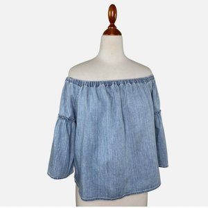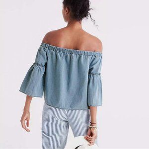 Madewell Denim Azalea Off-the-Shoulder Top Size Medium Chambray G5802.