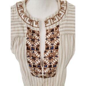 MadeWell Womens Beige Embroidered Belize Cover Up Tunic Sleeveless Shirt M Boho