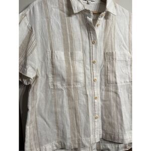 Madewell Womens Beige Linen Blend Undyed Edition Short Sleeve Safari Shirt XS