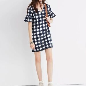 Madewell women’s bell sleeve mini dress in leighton plaid blue and white (transatlantic blue). Size 12.