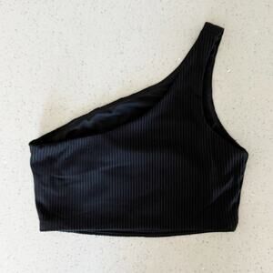 Madewell Womens Bikini Top Ribbed One-Shoulder Longline Swim UPF 50 Black Size M