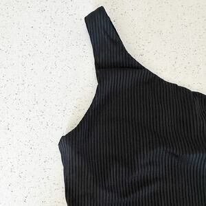 Madewell Womens Bikini Top Ribbed One-Shoulder Longline Swim UPF 50 Black Size S