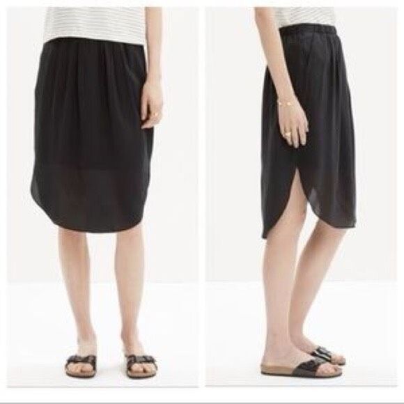 Madewell Womens Black 100% Silk Island Midi Pencil Skirt Black Pockets