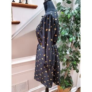 Madewell Women's Black Polyester Round Neck Long Sleeve Knee Length Dress Small.