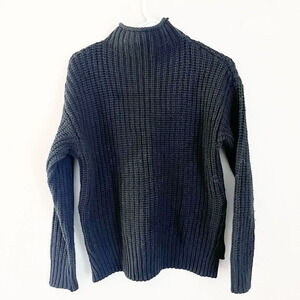 Madewell Womens Black Pullover Sweater XS Chunky Knit Mock Neck Side Button