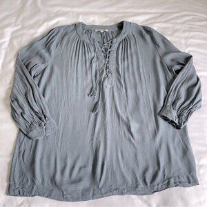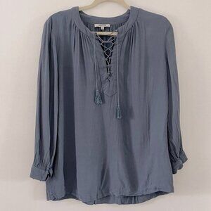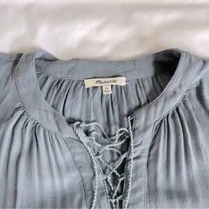 Madewell Blue Lace Up Boho Peasant Long Sleeve Blouse