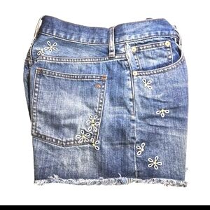 Madewell Women's Blue Denim Jean Floral Embroidered Cut Off Shorts Size 26