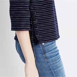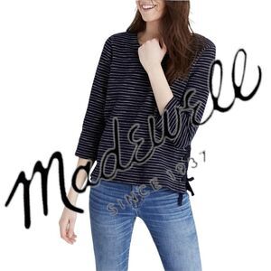 Madewell Womens Blue and White Striped Pull Over Knit Long Sleeve Sweater Size S