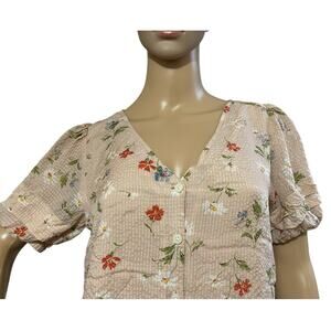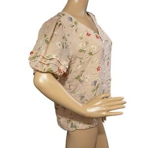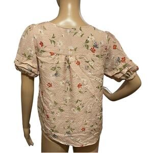 Madewell Women's Blush Pink Floral V-Neck Silk Blouse S Puff Sleeves-Cottagecore