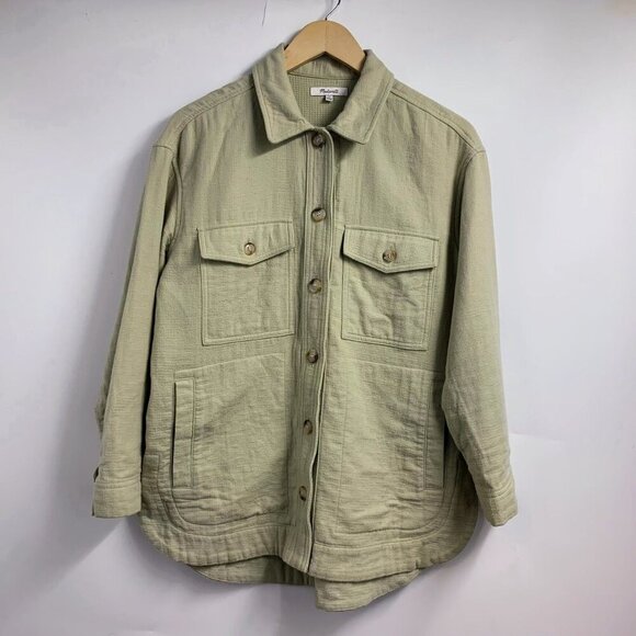 Madewell Women's Branner Back Sage Green Waffle Shirt Jacket Size XS