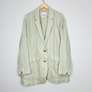 Madewell Women's Breezewoven Larsen Linen Blazer in Pale Sage Gray Green 1X
