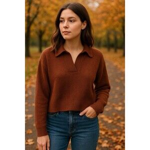 Madewell Women's Brown Collared Polo Sweater Minimalist Quiet Luxury Casual Sm