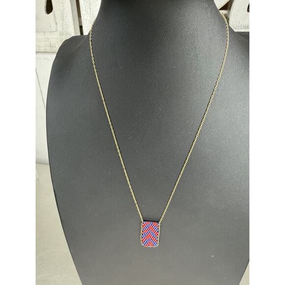 Madewell Women's Chevron Beaded Pendant Necklace Blue Red Gold