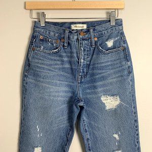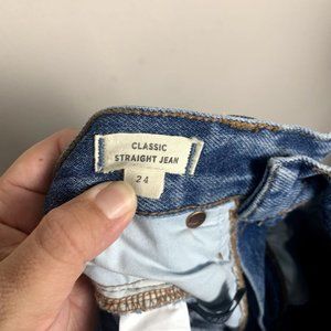 Madewell Womens Classic Straight Jeans Size 24 Distressed Raw Hem Straight Leg