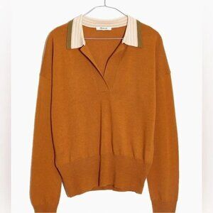Madewell Women's Colorblock Merino Wool Polo Sweater Pullover Brown Size Small. Washed and line dried. Excellent Used condition.