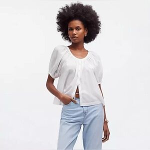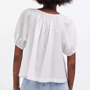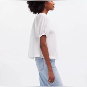Madewell Womens Cotton Blend Puff-Sleeve A-Line Top NQ540 Sz Medium In White NWT