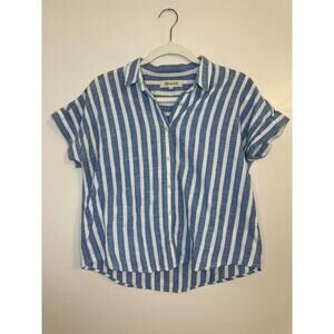 Madewell Womens Cotton Cropped Short Sleeve Button Down Coastal Capsule Small