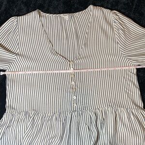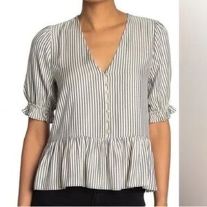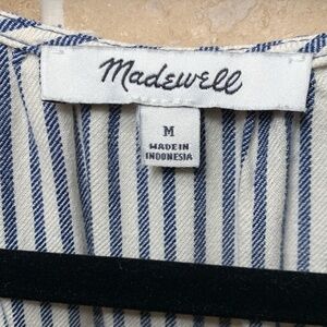 Madewell Women’s Courtyard Ruffle-Hem Top in Stripe Blue and Cream Size Medium