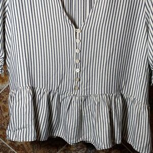With its swingy peplum hem, this striped V-neck top is the breeziest way to do the ruffle thing. Mini buttons give it a vintage vibe.