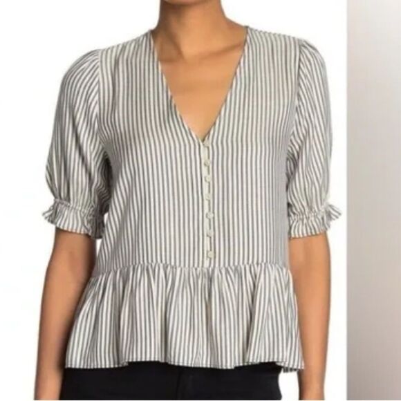 With its swingy peplum hem, this striped V-neck top is the breeziest way to do the ruffle thing. Mini buttons give it a vintage vibe.
