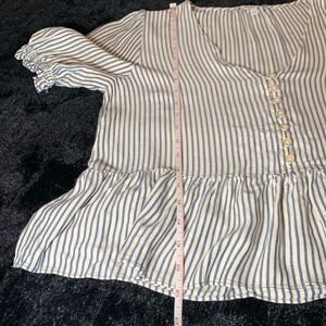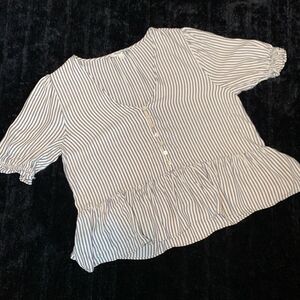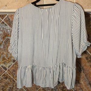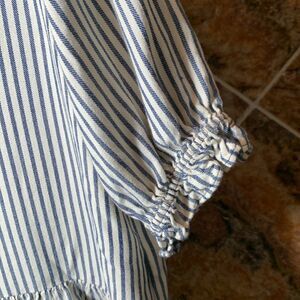 Madewell Women’s Courtyard Ruffle-Hem Top in Stripe Blue and Cream Size Medium