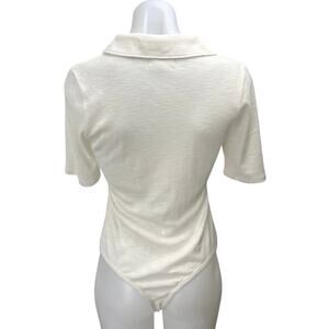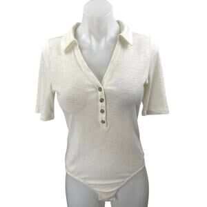 Madewell Women's Cream Short Sleeve Polo V Neck Henley Knit Bodysuit Top Size M