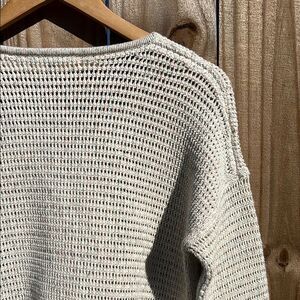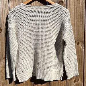 Embrace effortless style with this cream V-neck sweater from Madewell, featuring a relaxed fit and a chic horizontal ribbed knit pattern. The slightly oversized design and full-length sleeves make it perfect for cozy days. Its cropped length adds a modern touch to any outfit.