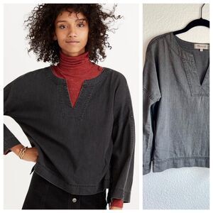 Madewell Women's Denim Side-Lace Top in Sloane Black Fadeout - Size XXS