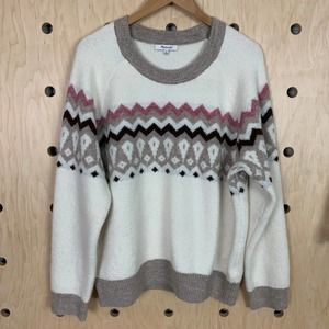 Madewell Women’s Fair Isle Markham Pullover Ivory Plush Sweater Size XL
