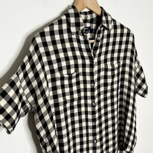 Madewell Womens Flannel Courier Shirt XXS Black Cream Check V Neck Short Sleeve
