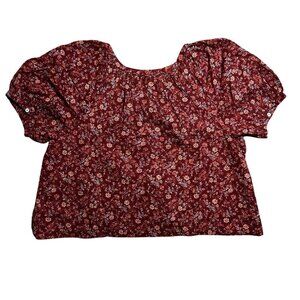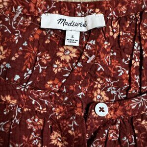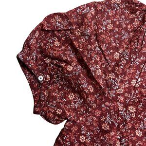 Madewell Womens Floral Print Button-Front Blouse Small Burgundy 100 % Cotton
