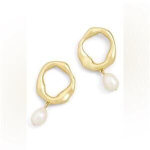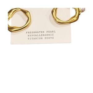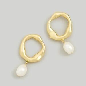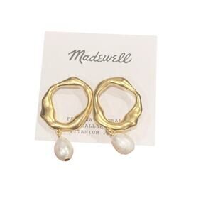 Madewell Women's Freshwater Pearls Front Facing Hoop Earrings (Vintage Gold) NWT