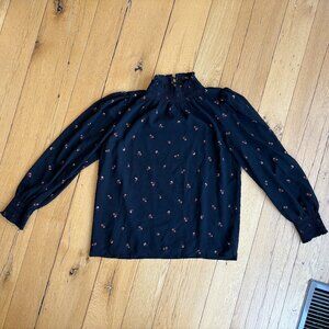 Madewell Women's Georgette Smocked Mockneck Top Size Small