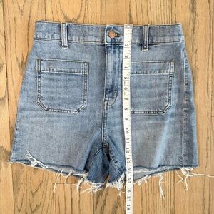 Madewell Women’s High Rise Patch Pockets Frayed Hem Denim Shorts Size 27